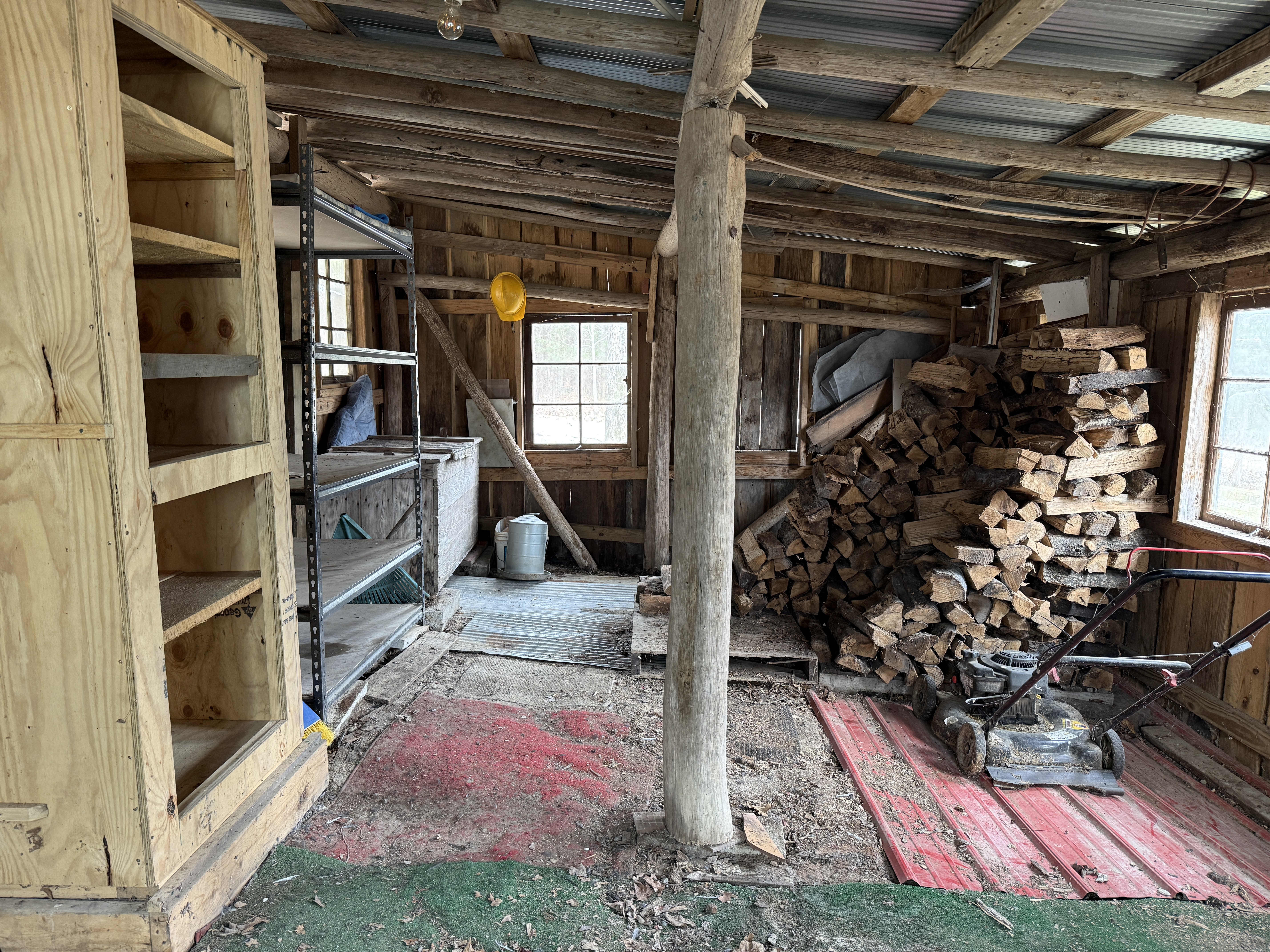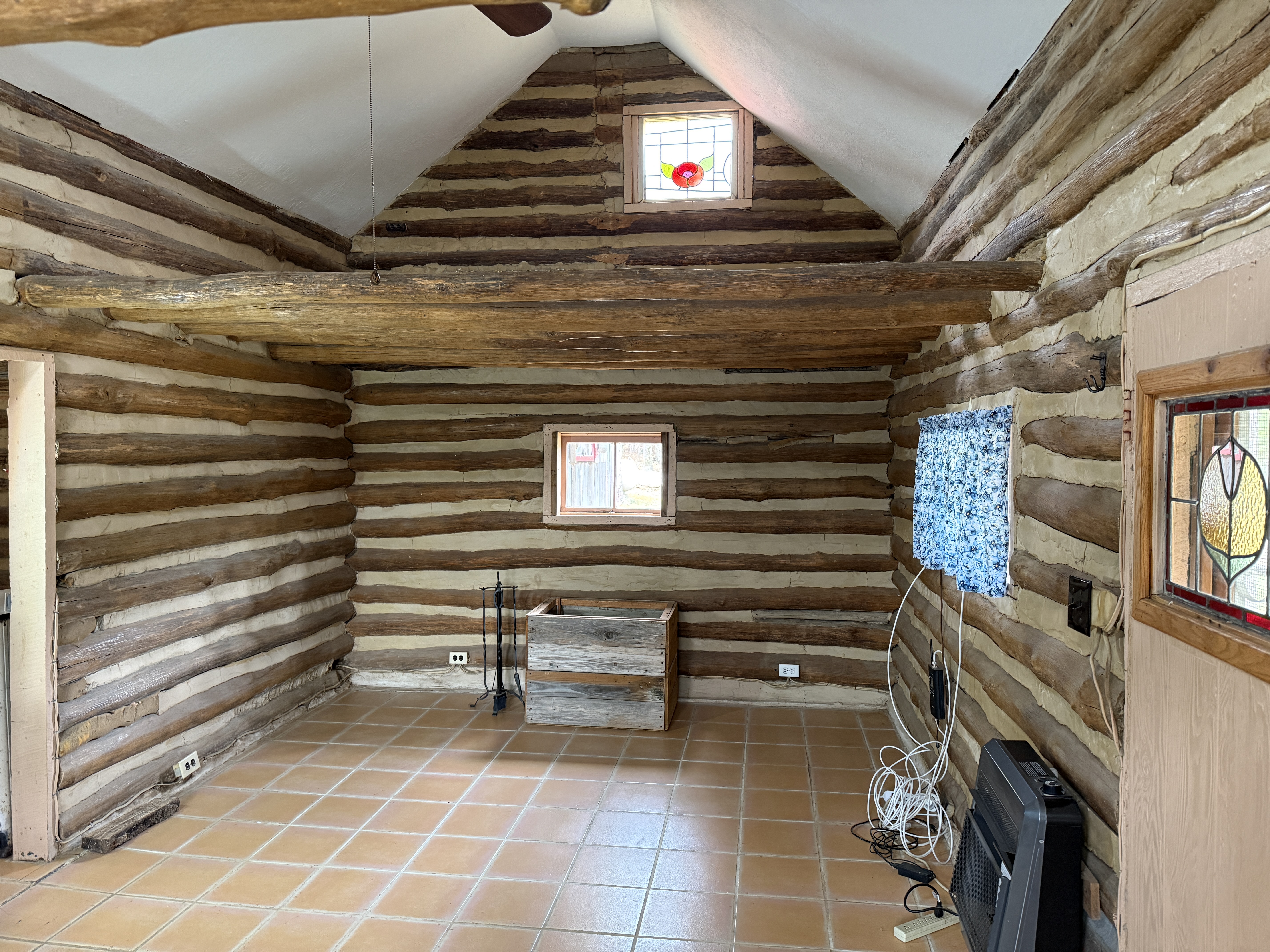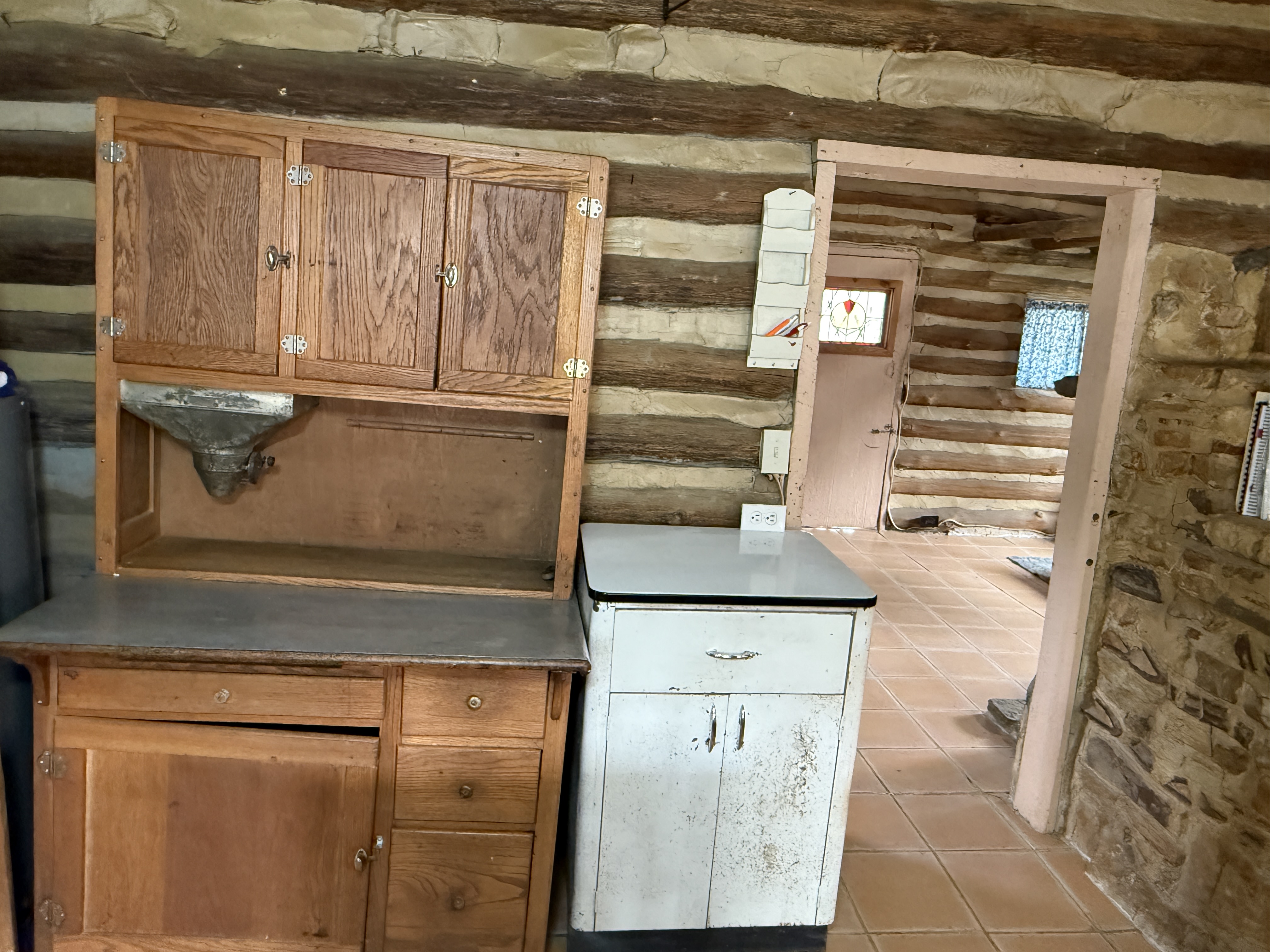 The main residence is a 667 +/- square foot log cabin featuring a stunning rock fireplace designed to radiate heat throughout the home, keeping you cozy on cool Ozarks evenings. The cabin offers a spacious living area, full kitchen, one bedroom just off the kitchen, and a full bath with a custom rock shower. A walkway connects the home to the laundry area, wood room, and carport—adding both convenience and functionality. The property is equipped with public water, electricity, and high-speed fiber internet, along with a backup well with hand pump located behind the cabin.