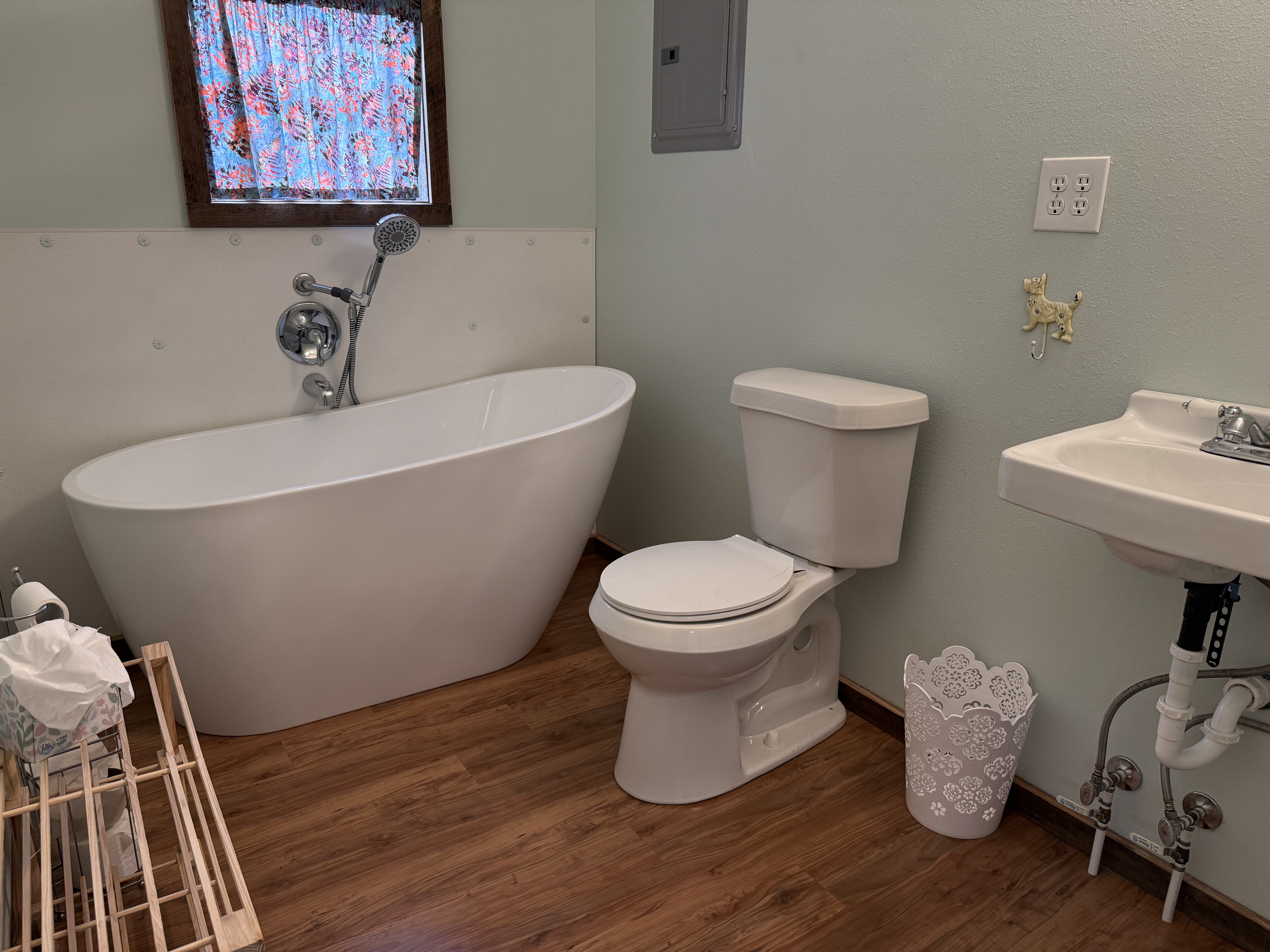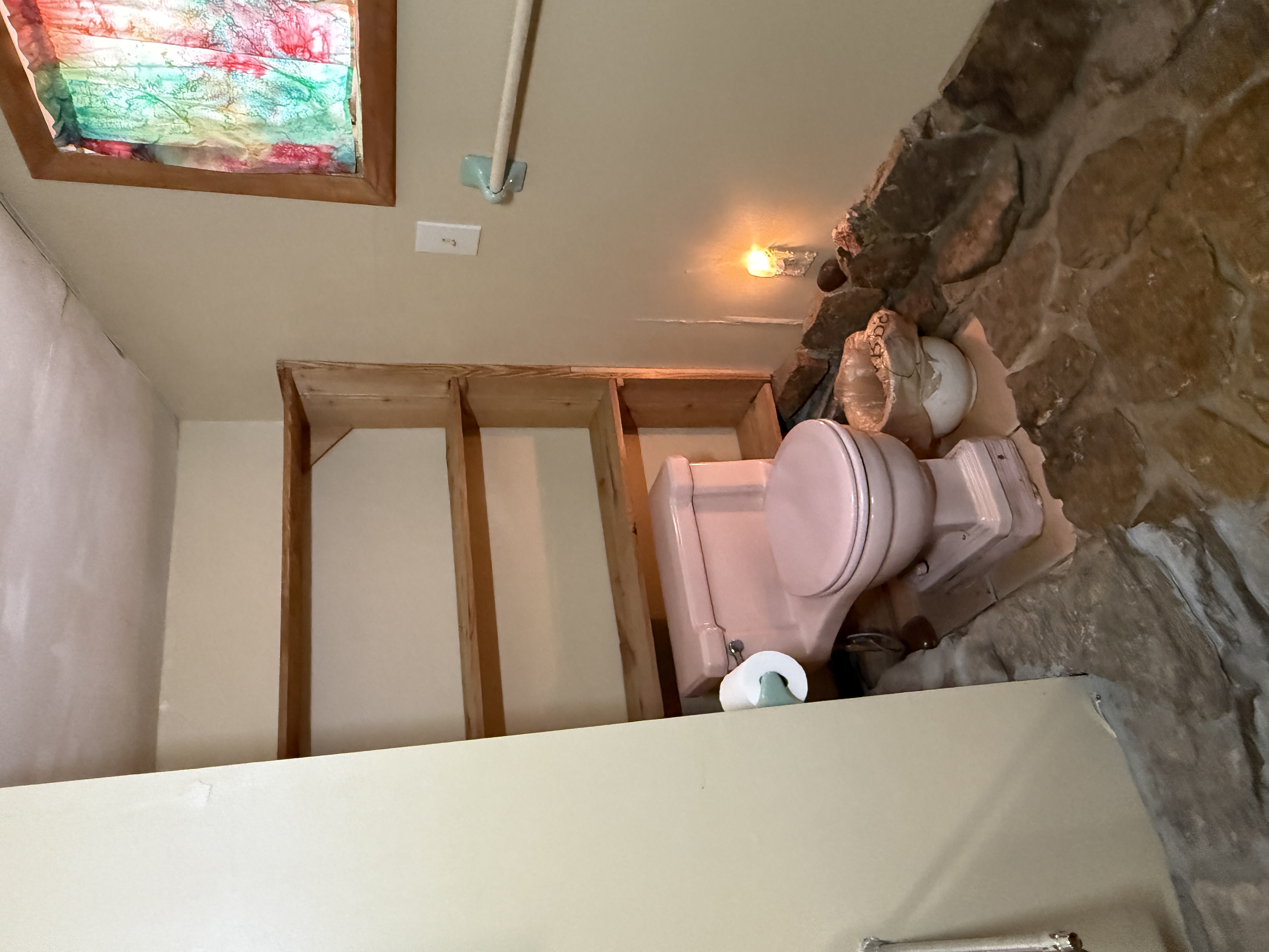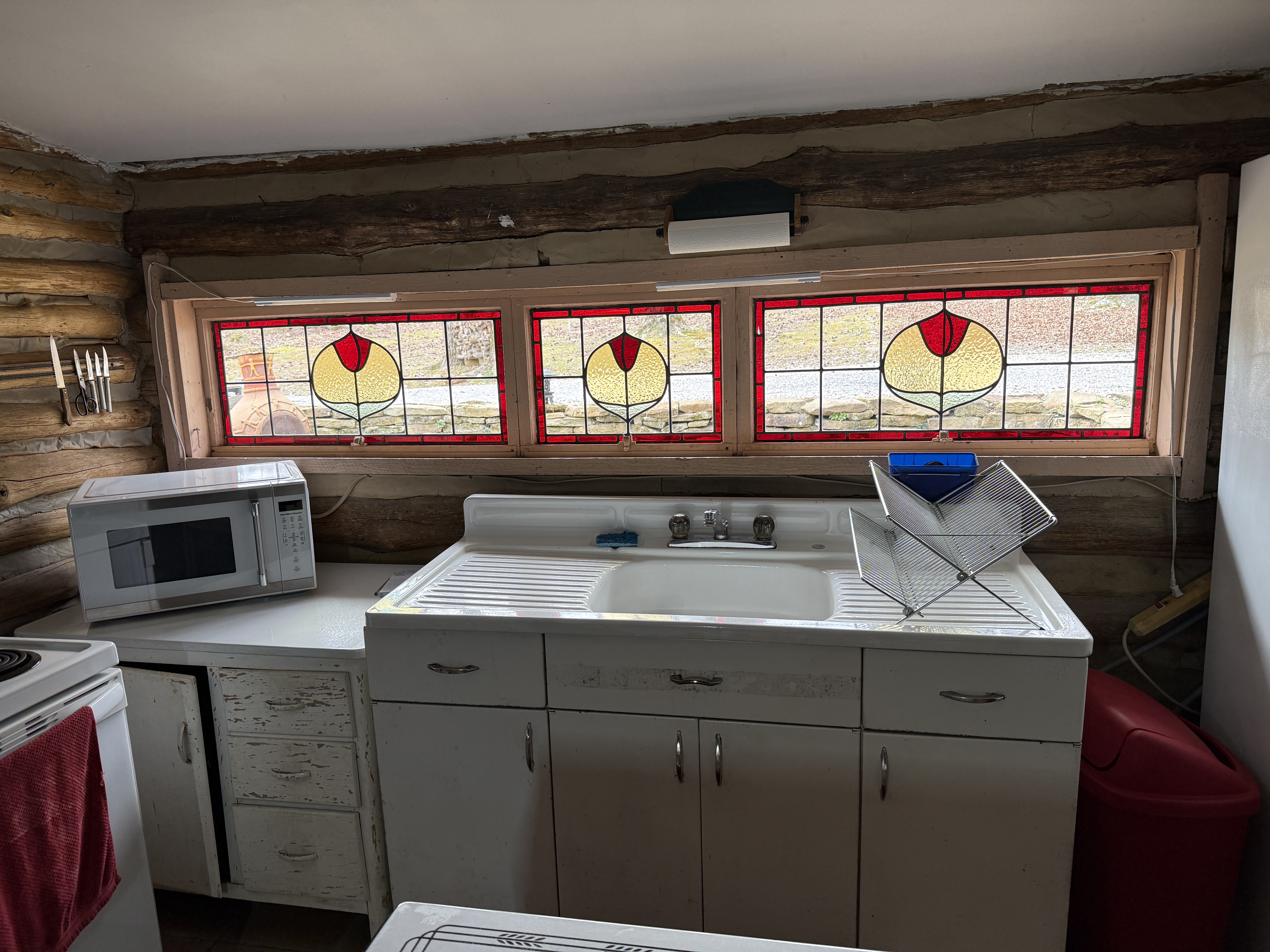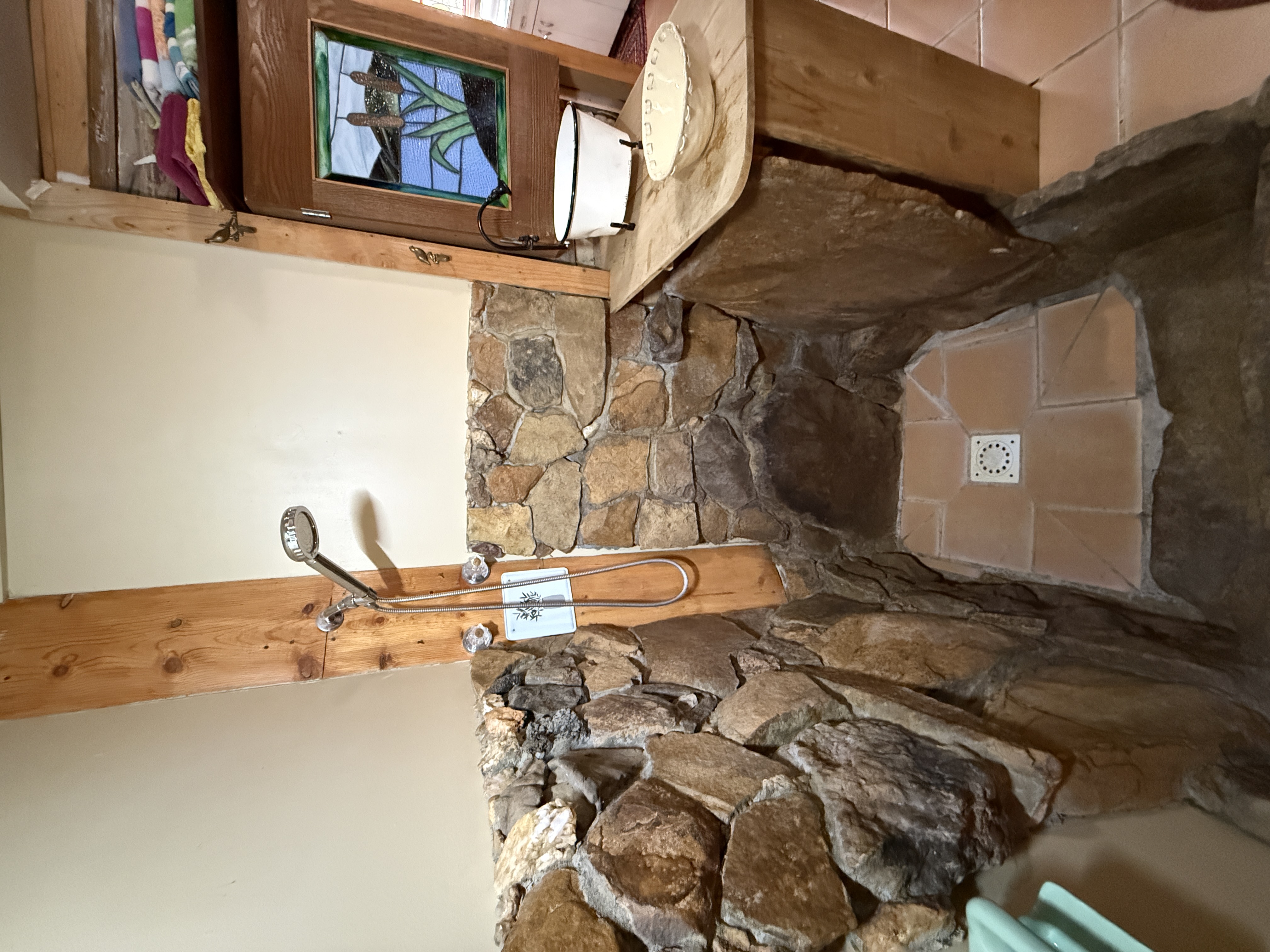 The main residence is a 667 +/- square foot log cabin featuring a stunning rock fireplace designed to radiate heat throughout the home, keeping you cozy on cool Ozarks evenings. The cabin offers a spacious living area, full kitchen, one bedroom just off the kitchen, and a full bath with a custom rock shower. A walkway connects the home to the laundry area, wood room, and carport—adding both convenience and functionality. The property is equipped with public water, electricity, and high-speed fiber internet, along with a backup well with hand pump located behind the cabin.